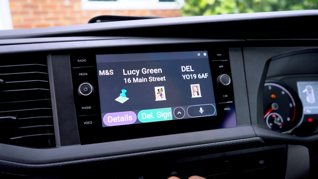 Перевага для водіїв: вони бачать і чують під час руху всю інформацію про замовлення і можуть обирати наступну доставку через сенсорний екран або голосову команду. За бажанням система може зчитувати найбільш релевантні відомості про наступну доставку, як-от ім’я одержувача, адреса, тип доставки.