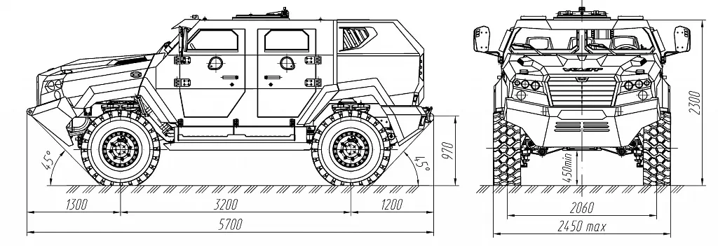 Корпус ЛБА 4-х дверный, оборудован 5-тью энергопоглощающими сиденьями, фальшполом, а также противоминным поддоном, имеет уровень баллистической защиты 2, противоминной 2а/2b по STANAG 4569.