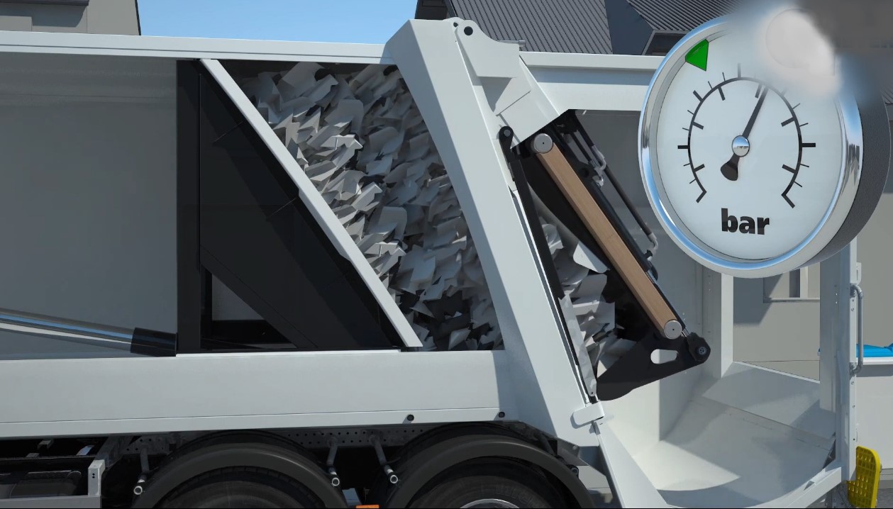 Она имеет наилучший коэффициент прессования, по сравнению с другими мусоровозами: 1 к 8. Таким образом, объем мусора, который загружается в 19-кубовый бункер, уменьшается в восемь раз. Модель способна прессовать крупногабаритные отходы: мебель, бытовую технику.