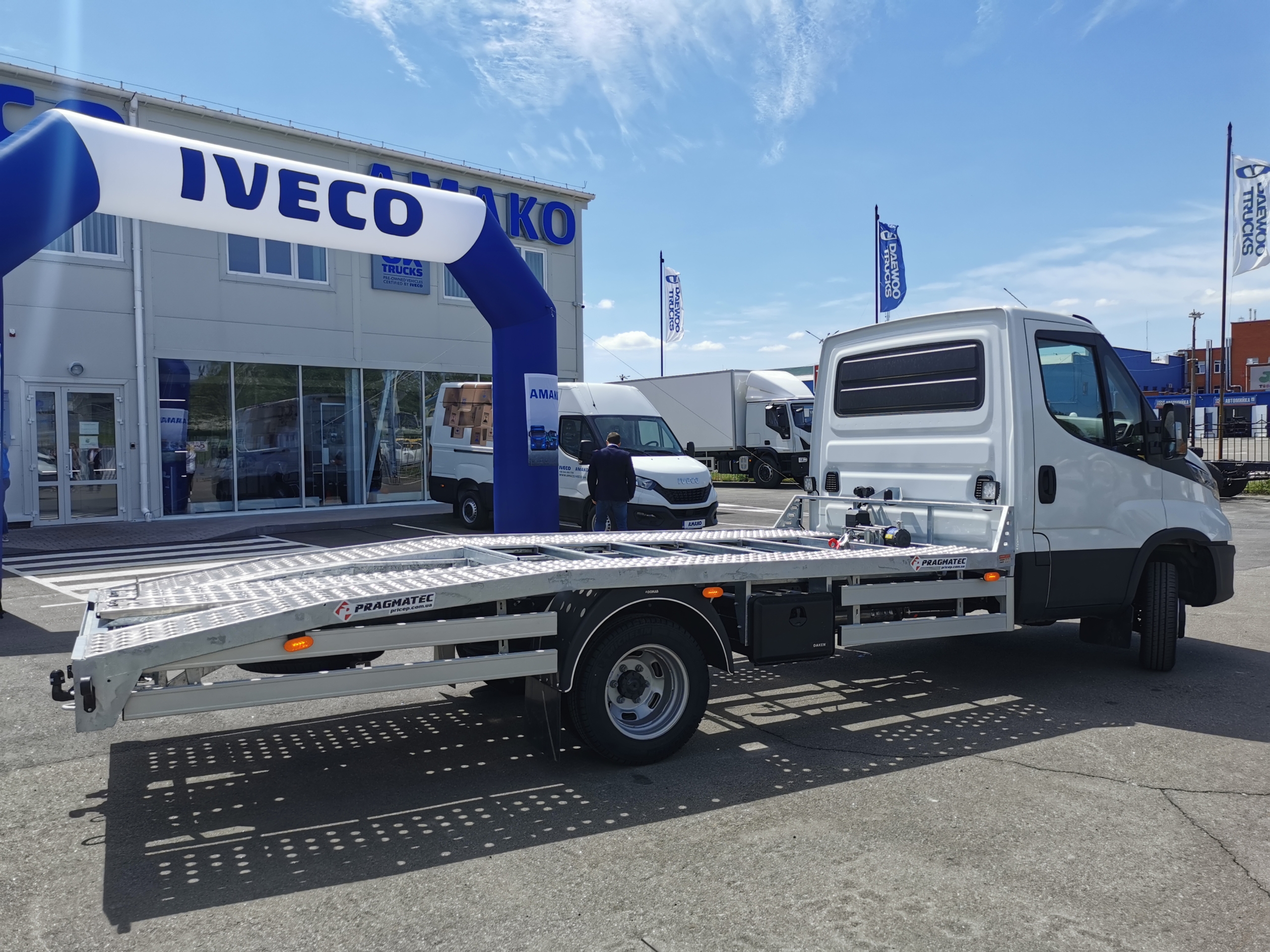 Чергова новинка від компанії АМАКО – автовоз на базі IVECO Daily, оснащений надбудовою від вітчизняного заводу причіпної техніки “Прагматек”. Завдяки гарячій оцинковці сталева платформа має хороший антикорозійний захист.