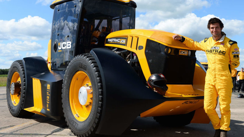 Цей трактор розігнався до 140,44 км/год. Однак цей результат тьмяніє перед заїздом на британському аеродромі Elvington під Йорком у червні цього року. Виявляється, відомий британський мотогонщик і телеведучий Гай Мартін зміг розігнати колісний трактор JCB Fastrac до неймовірної швидкості – 166,72 км/год.