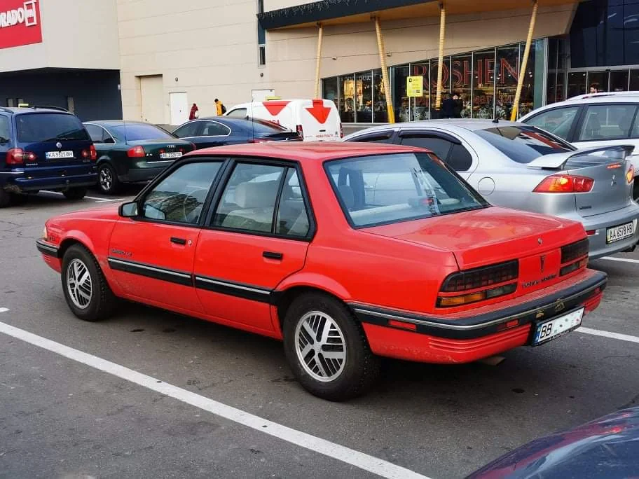 Цей яскраво-червоний автомобіль, помічений днями на одній з київських стоянок, в профіль нагадує Opel Ascona С. Однак якщо придивитися, то розумієш, що це заокеанський гість. А саме Pontiac Sunbird третього, останнього покоління 1989-1994 рр. Зовні машини відрізняються світлотехнікою і аеродинамічним бампером. А схожість із Opel Ascona С не випадкова, адже побудовані обидві ці машини на одній передньопривідній платформі J200.