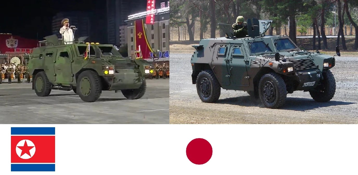 Особенностью нынешнего парада стало также появление многочисленных клонов военной техники из Японии, США и России. Военная промышленность Северной Кореи не преминула заимствовать и практически полностью скопировала известные мировые образцы современной бронетехники.
