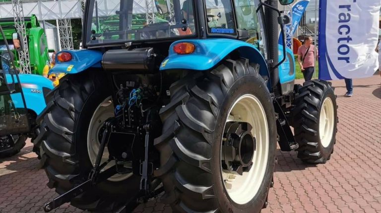 На стенде «Юниверсал Моторз Груп» также представлены и два трактора южнокорейского бренда LS. Начнем с модели LS 1004. Это 105-сильный трактор с реверсивной трансмиссией (12 передач вперед и 12 назад), что существенно облегчает изменения движения (вперед/назад) без основной передачи. Минимальная скорость движения – 1,8 км/ч. Масса трактора с кабиной – 3454 кг.