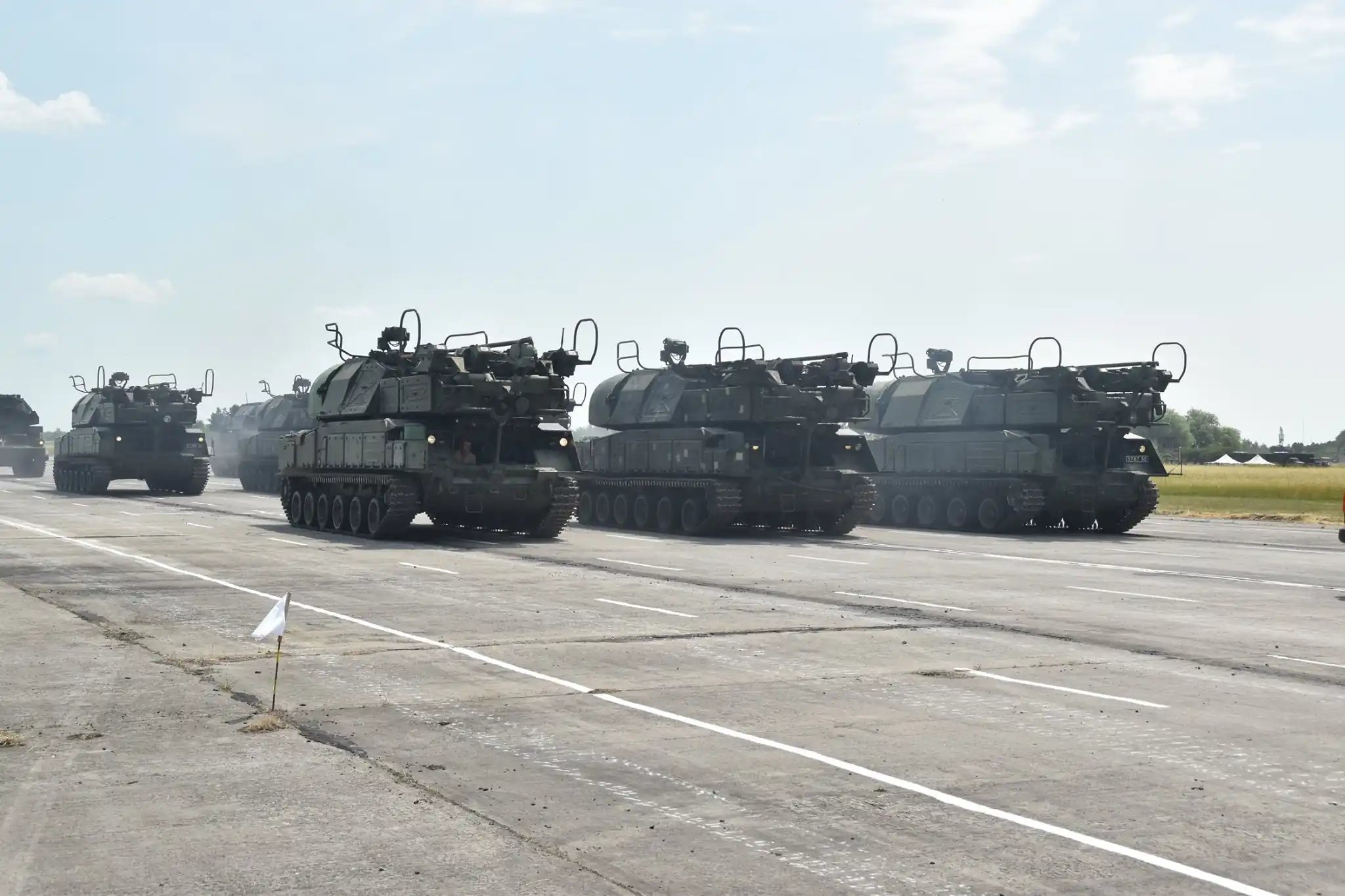 В парадные расчеты входит артиллерия, автомобильная техника, в частности бронированные Hummer, санитарные автомобили «Богдан», реактивные системы залпового огня БМ-21 "Град", ракетные комплексы С300, комплексы радиоэлектронной борьбы с беспилотными летательными аппаратами, машины связи на шасси Renault Trucks 4х4 и др.