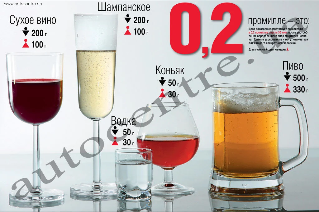 Даже после употребления «ненаказуемой» дозы спиртного в 0,2 промилле садиться за руль категорически запрещается. Это можно делать только после полного протрезвления.