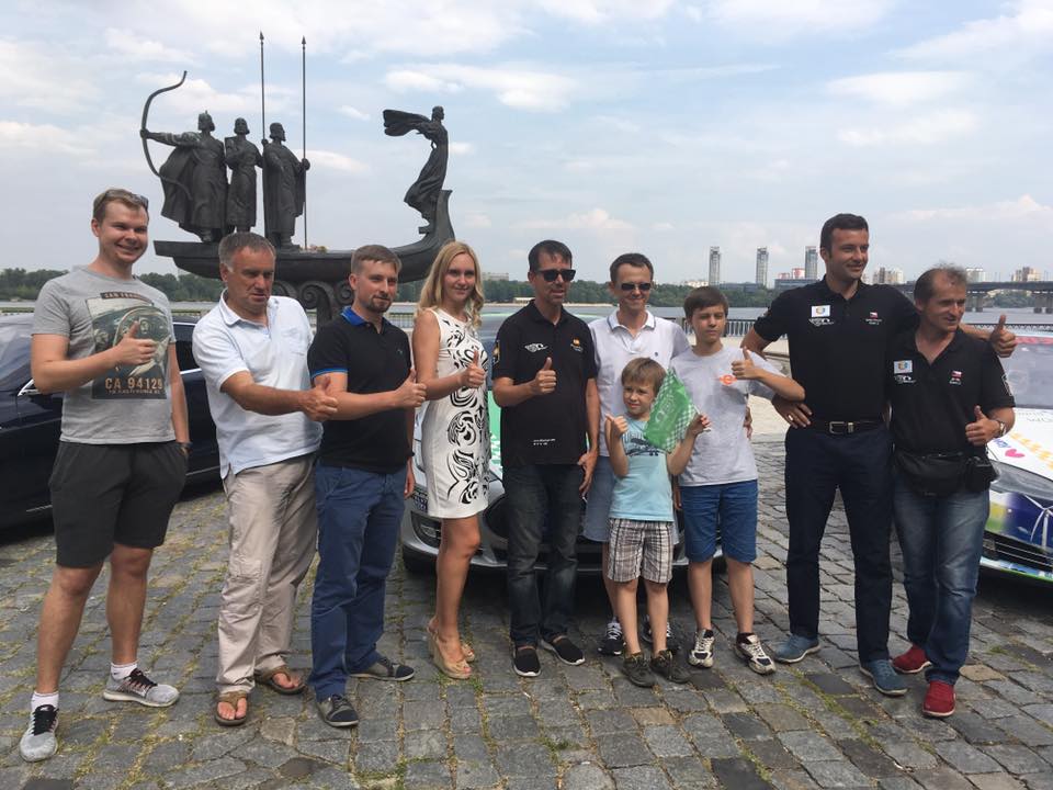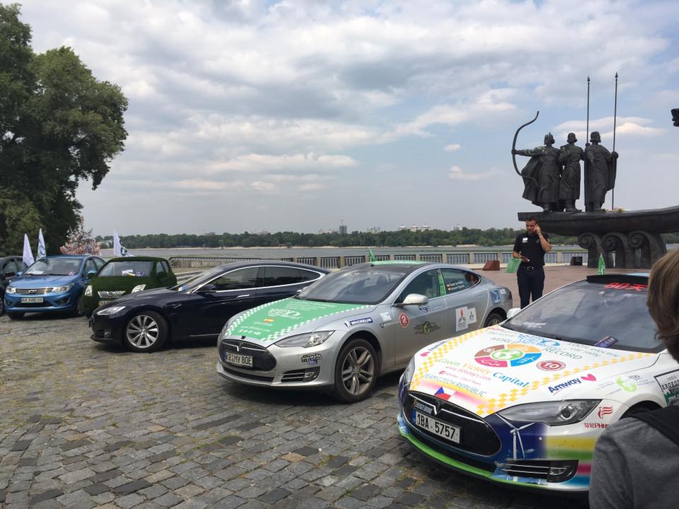 На 56 день подорожі, 11 серпня учасники ралі завітали до столиці України – наразі зупинка була зроблена біля пам’ятника засновників Києва. Саме тут гостей зустріли представники Українсьої Асоціації Учасників Ринку Електромобілів (EV-UA).