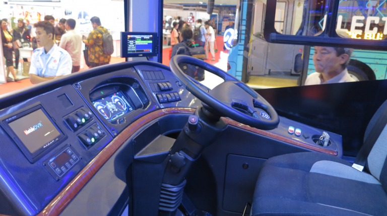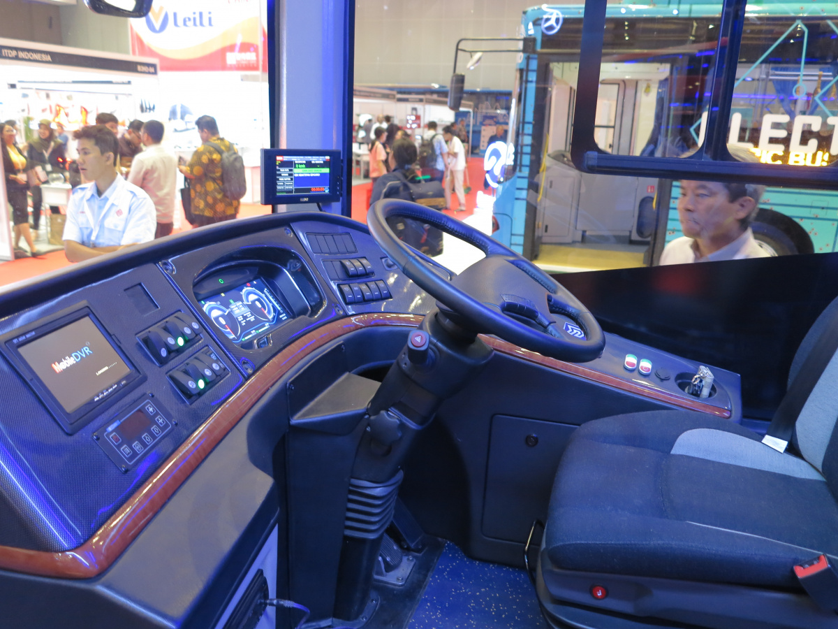 Представили на выставке Busworld и два городских электробуса – китайской марки BYD и от местных, индонезийских производителей – с кузовом от ателье New Armada и шасси марки MAB. О последнем мало чего рассказывали – пока это прототип. Кстати, оператор Trans Jakarta планирует в ближайшее время запустить на маршруты первые электробусы.