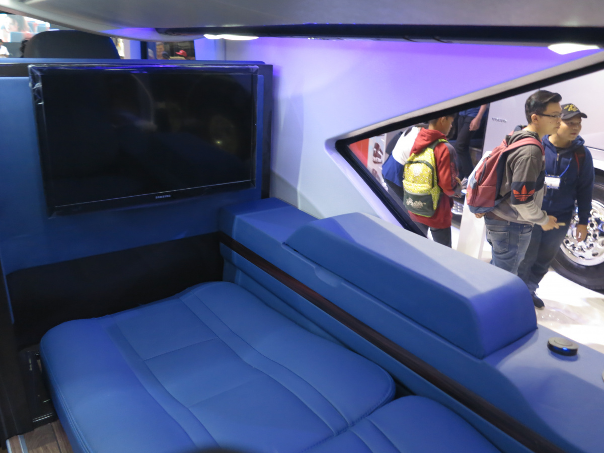 Кстати, на стенде Laksana был и турист на шасси Мерседеса – с салоном с полноценным диваном и подпольными багажниками, в которые поместили мотоциклы.
