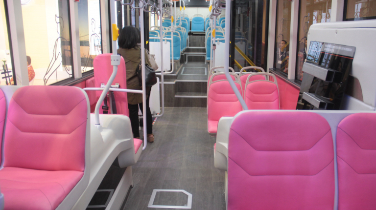 Автобусы TransJakarta едут по специальной полосе, огороженной высоким бордюром. Двери и соответственно пол автобусов находятся в метре от земли, притом без подножек – машины подъезжают к перрону как метро. Для девушек и женщин запущены специальные розовые автобусы. А в обычных автобусах они негласно размещаются в первой половине салоне, а мужчины – во второй.