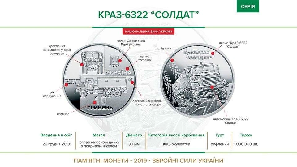 Монета діаметром 30 мм виготовлена зі сплаву на основі цинку і буде викарбувана тиражем в 1 млн штук. Придбати її можна в спеціальних точках сувенірної продукції, зокрема і онлайн через сайт Нацбанку.