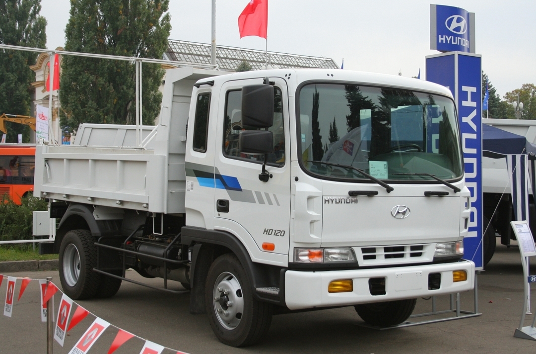 Представлений самоскид Hyundai HD 120 був презентований українському споживачеві ще на виставці TIR 2007 в Києві. В даному випадку машина оснащена платформою з надставними бортами. Бічні борти зроблені відкидними.