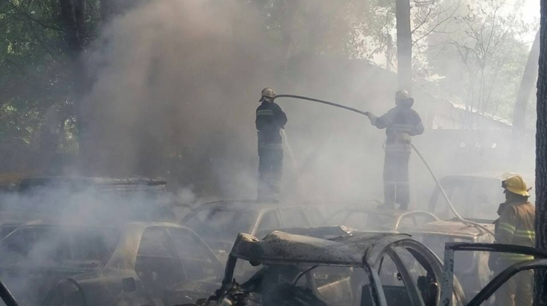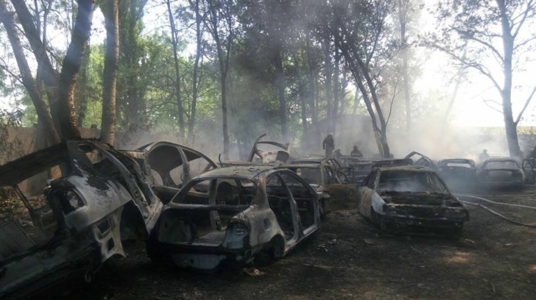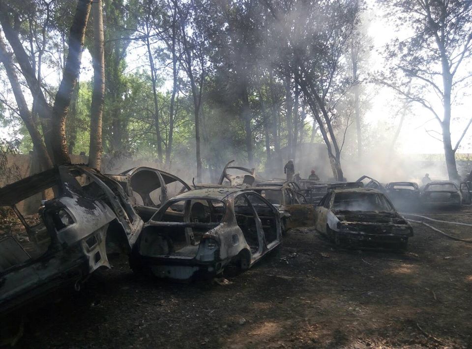 На место события немедленно были направлены спасатели из ближайших пожарно-спасательных подразделений и было установлено, что на открытой автостоянке горит около 54 автомобилей. Не тратя попусту время, спасатели приступили к гашению пожара.