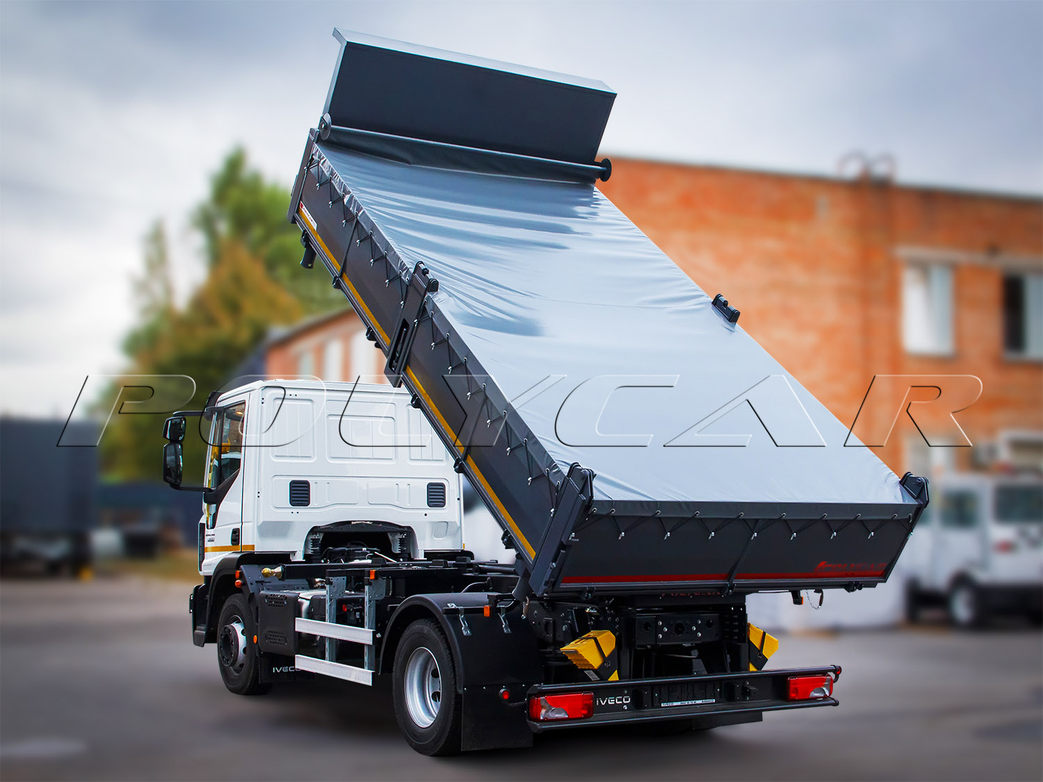 На шасі IVECO Eurocargo ML120, розрахованого на повну масу 12 т, встановлено самоскидний кузов тристороннього розвантаження. Внутрішній об’єм сягає 7 кубометрів. Платформа завдовжки 4800 мм, завширшки 2550 мм та заввишки 600 мм має сталеву конструкцію: товщина підлоги складає 6 мм, а бортів – 4 мм. Всі металеві елементи надбудови, включаючи надрамник, покриті двокомпонетною акриловою ґрунтовкою та пофарбовані.