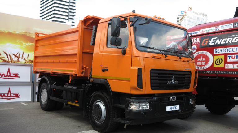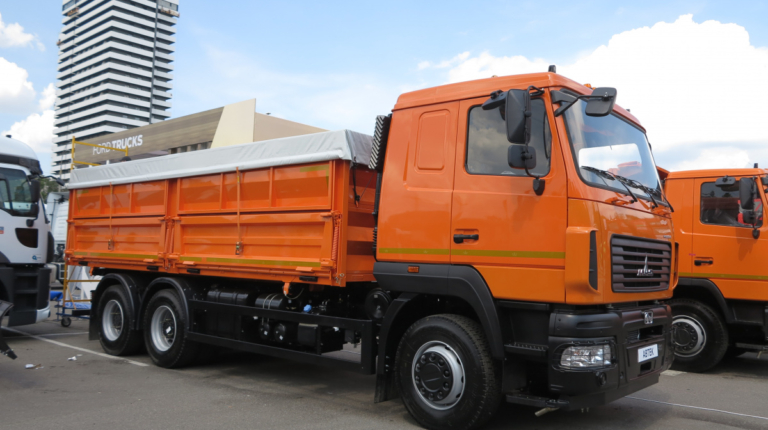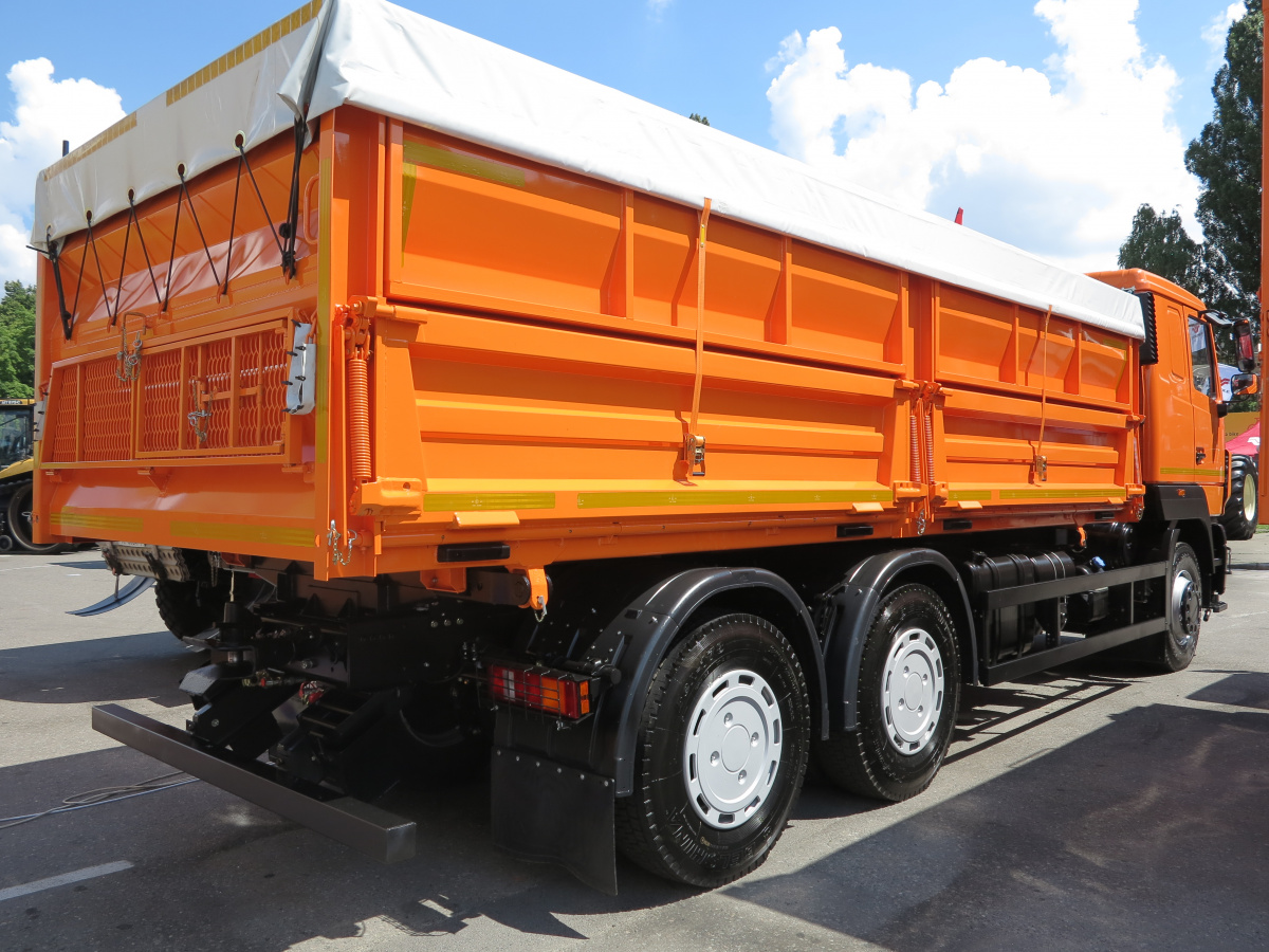 Второй самосвал – МАЗ-6501С5-8535-000 колесной формулы 6х4. Он рассчитан на грузоподъемность 13000 кг и оснащен кузовом двусторонней разгрузки полезным объемом 20 кубометров. Грузовик можно состыковать с самосвальным прицепом МАЗ-856103-022-000 грузоподъемностью 15000 кг и объемом кузова 25 м куб.