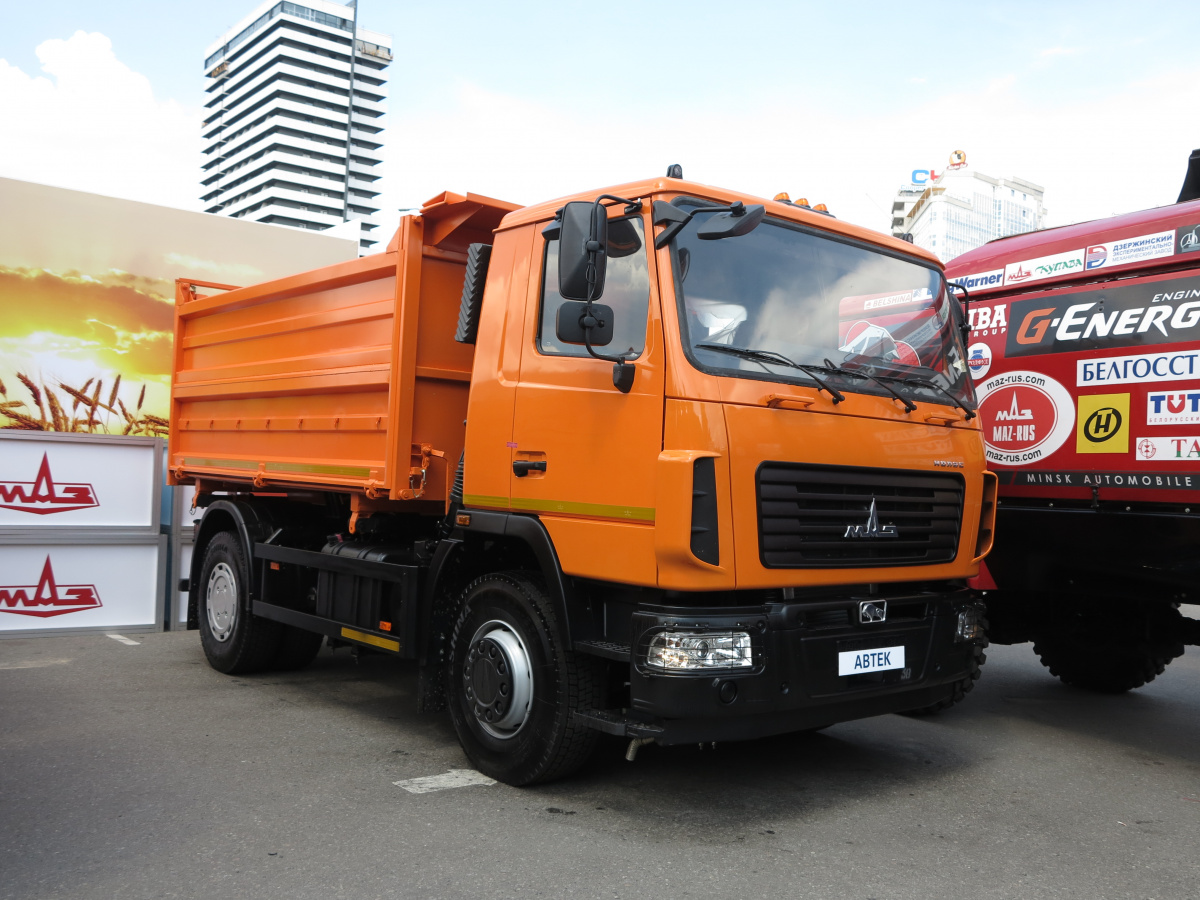 Если же говорить о серийных новинках, которые могут стать надежными помощниками для фермеров, то на выставку Агро-2019 привезли два новых сельскохозяйственных самосвала. Первый – МАЗ-555026-4585-000 колесной формулы 4х2. Машина имеет грузоподъемность 9900 кг и оснащена кузовом трехсторонней разгрузки полезным объемом 12,5 м куб. Автомобиль укомплектован двигателем Weichai WP7.300Е51 (Евро 5) мощностью 292 л.с. и 9-ступенчатой коробкой передач 9JS135TA.