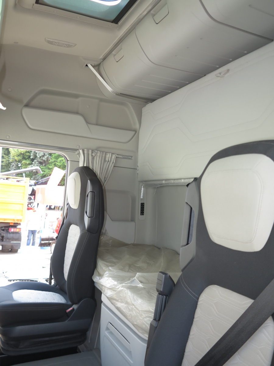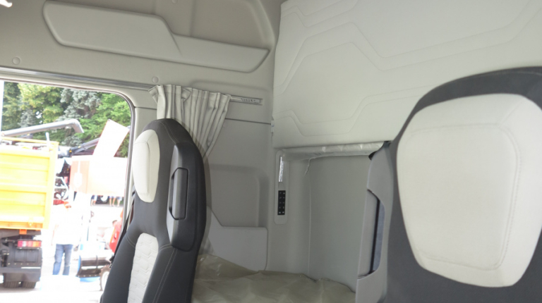 Начнем с экспозиции Ford Trucks, где состоялся показ новейшего магистрального тягача Ford Trucks F-MAX, победившего в престижном конкурсе «Международный грузовик 2019 года». Машина получила полностью новую кабину, которая имеет самую большую внутреннюю высоту в классе – 2,16 м. Особый комфорт в кабине достигается за счет совершенно ровного пола и запатентованной концепции размещения вещевых отсеков (над верхней спальной полкой).