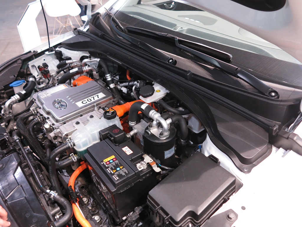 Примечательно, что автомобиль с гибридной силовой установкой можно не только осмотреть и пощупать, а и протестировать на открытой площадке, перед павильоном.