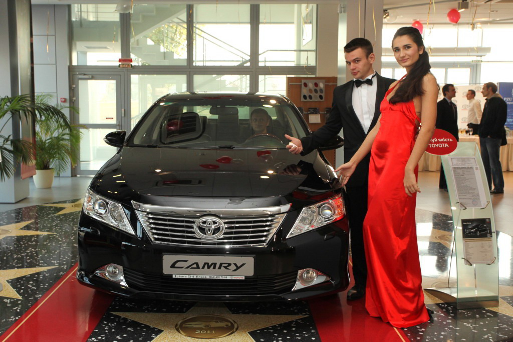Появление новой модели в Украине стало для «Сити Плаза» на Петровке приятным поводом пригласить в гости клиентов и всех ценителей Toyota. Праздник прошел в голливудском стиле, и новая Camry заняла свое место на аллее звезд в модельном ряду Toyota. Всех гостей встречали дивы в алых элегантных платьях, чтоб все посетители могли почувствовать себя участниками торжественной церемонии. В течение 2 дней посмотреть на новую звезду в модельном ряду Toyota пришло свыше 600 человек.
