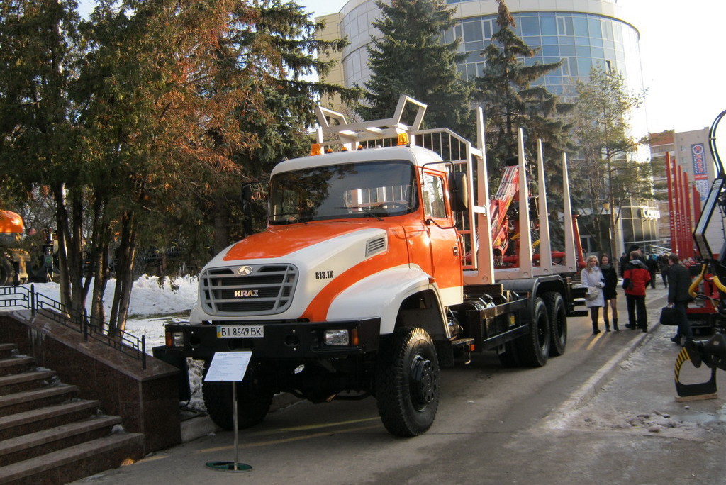 Посетителям выставки, а это в основном представители организаций лесной промышленности 28 регионов России и 10 иностранных государств, представил две свои последние новинки – автомобили-сортиментовозы КрАЗ М19.2R с кабиной Renault Kerax (6х4) – первый неполноприводный автомобиль КрАЗ для лесного хозяйства, и КрАЗ М16.1Х (6х6) с интегральным капотом. Сортиментовозы оснащены сортиментовозным оборудованием и манипулятором фирмы «Велмаш» (г.Харьков).