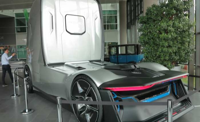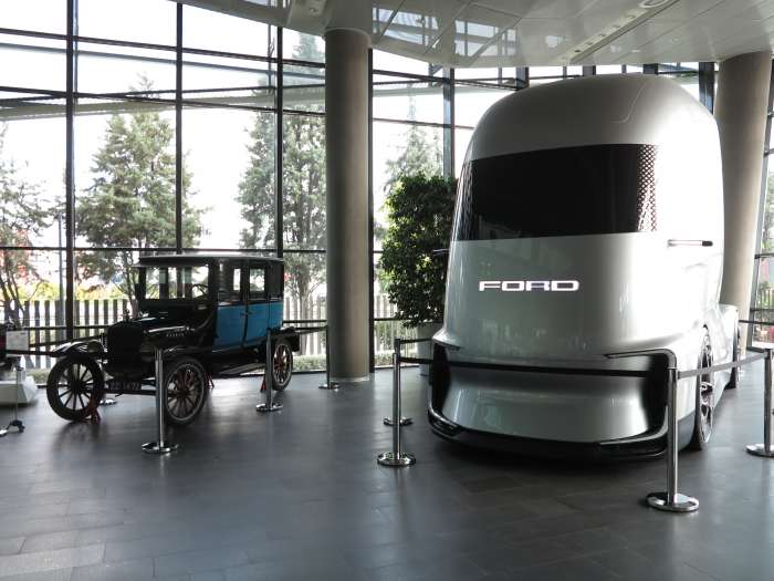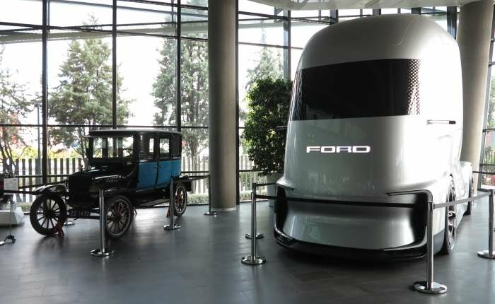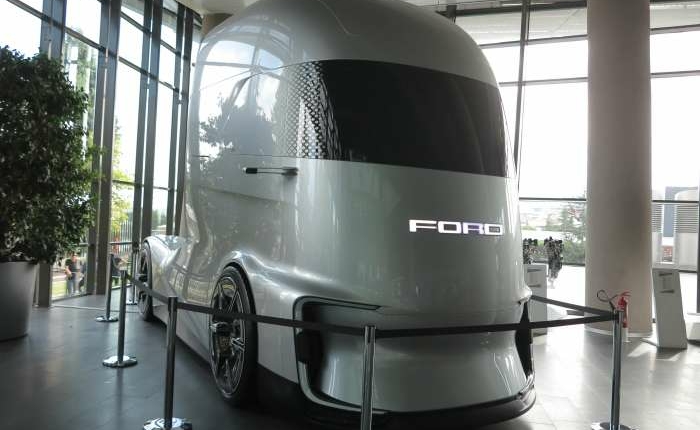 Тягач Ford Trucks F-MAX – первый грузовик Ford Trucks, разработанный, как говорится, с чистого листа. Над машиной трудились 4 года, инвестиции составили порядка 400 млн евро. Тягач получил принципиально новую кабину. В дизайн-центре можно воочию увидеть ранние варианты кабин для F-MAX, которые внешне отличаются от серийных оформлением решетки радиатора, иными фарами, а также аэродинамическими элементами.