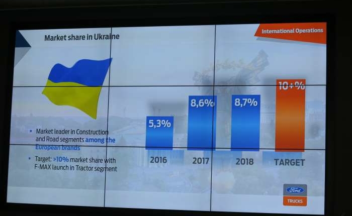 Ford Otosan работает в Украине уже более 11 лет и за это время мы постоянно двигались к увеличению нашей рыночной доли. В результате по итогам 2018 года она составила почти 9%. Мы являемся лидером в сегменте дорожного строительства, опередив здесь все европейские бренды. Занимаем также первое место в сегменте дорожных грузовиков, куда входит также и коммунальная техника. А с выходом на рынок нового продукта – автомобилей Ford Trucks F-MAX мы планируем серьезно увеличить нашу долю именно и в сегменте магистральных тягачей. В общем это позволит нам преодолеть барьер в 10%.