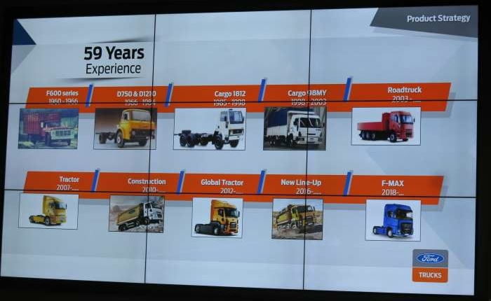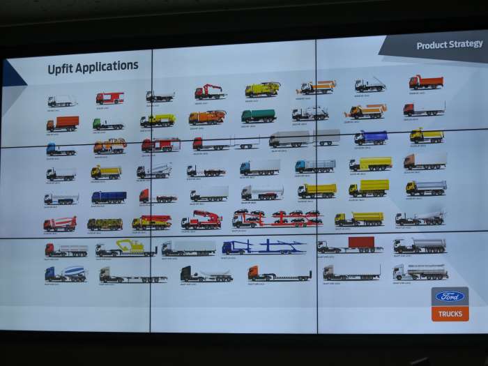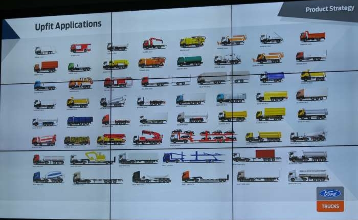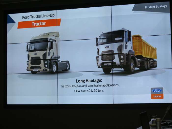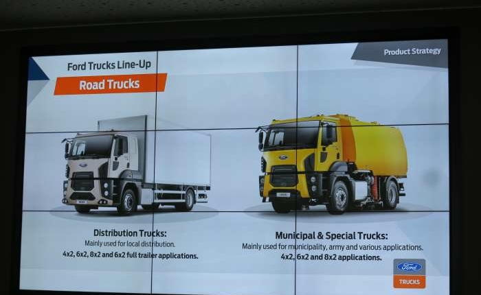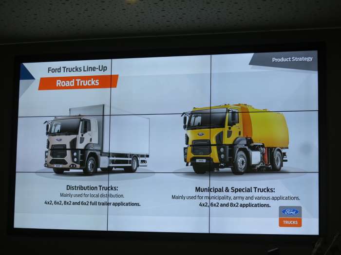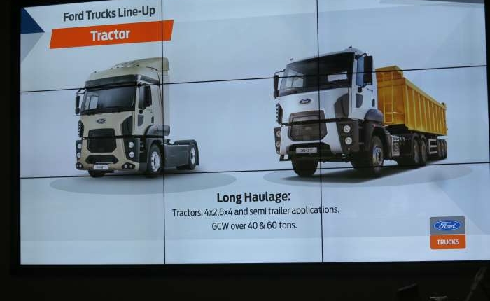 Модельный ряд Ford Trucks на сегодняшний день состоит их трех основных семейств. Первое – это Long Haul – cедельные тягачи с колесной формулой 4х2 и 6х4 для работы с полуприцепами в составе автопоездов полной массой 40 и 60 т. Далее идут машины для строительного сегмента – Сonstruction Trucks. Это шасси 6х4, 8х4,4х2,6х2 и 8х2 под установку самосвальных кузовов, миксеров, бетононасосов и других надстроек. И наконец третье семейство – это дорожные грузовики Road Trucks. Оно включает шасси 4х2, 6х2 и 8х2 для дистрибуции, а также шасси с аналогичной колесной формулой для работы в коммунальном секторе (мусоровозы, дорожные машины и др.).