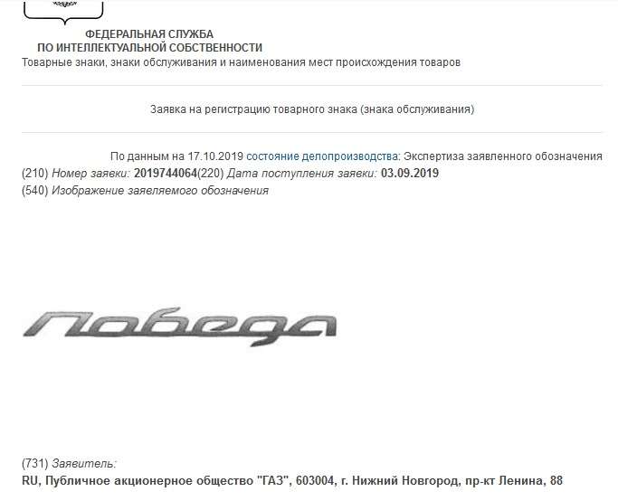 Многие СМИ подхватили сенсационную новость, будто на ГАЗе решили воскресить легендарный советский автомобиль ГАЗ М20 «Победа», который, как известно, выпускался с 1946 по 1958 гг. А поводом послужила заявка на новый торговый знак под номером RU 2019744064, поданная Группой ГАЗ в Федеральный институт промышленной собственности.
