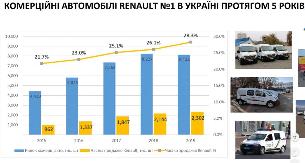 Франсуа Мариотт Председатель правления компании «Рено Украина» Renault является лидером по коммерческим автомобилям не только в Европе, но и в Украине. И это не случайность, так как компания имеет свой подход, выпуская качественный продукт и предоставляя качественные услуги. Наша стратегия – быть ближе к клиентам, и потому предлагаем индивидуальные решения. Мы предоставляем три года гарантии как на новый автомобиль, так и на переоборудованный – с кузовной надстройкой. И за этим стоит весь опыт Renault, необходимый инструмент и оборудование, которым владеет наша дилерская сеть, ведь автомобиль требует постоянного сервисного обслуживания.