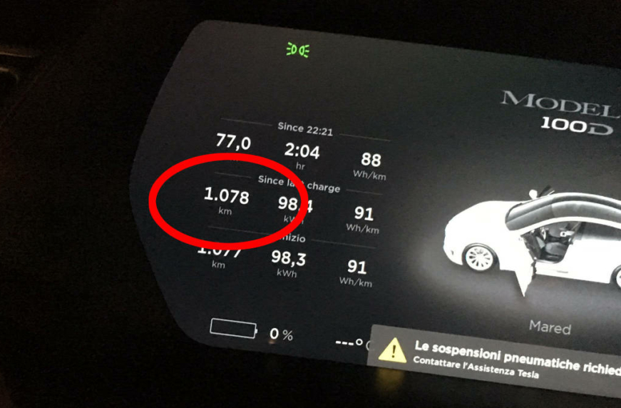 Щоправда, як зазначають у компанії Tesla, якщо рухатися на Model S 100D із постійною швидкістю в 72 км на годину без використання кондиціонера і при зовнішній температурі 43С, найпотужніша легкова Тесла в теорії здатна подолати 528 миль (845 км). Однак члени італійського клубу власників Tesla дослідним шляхом показали, що це геть не межа.
