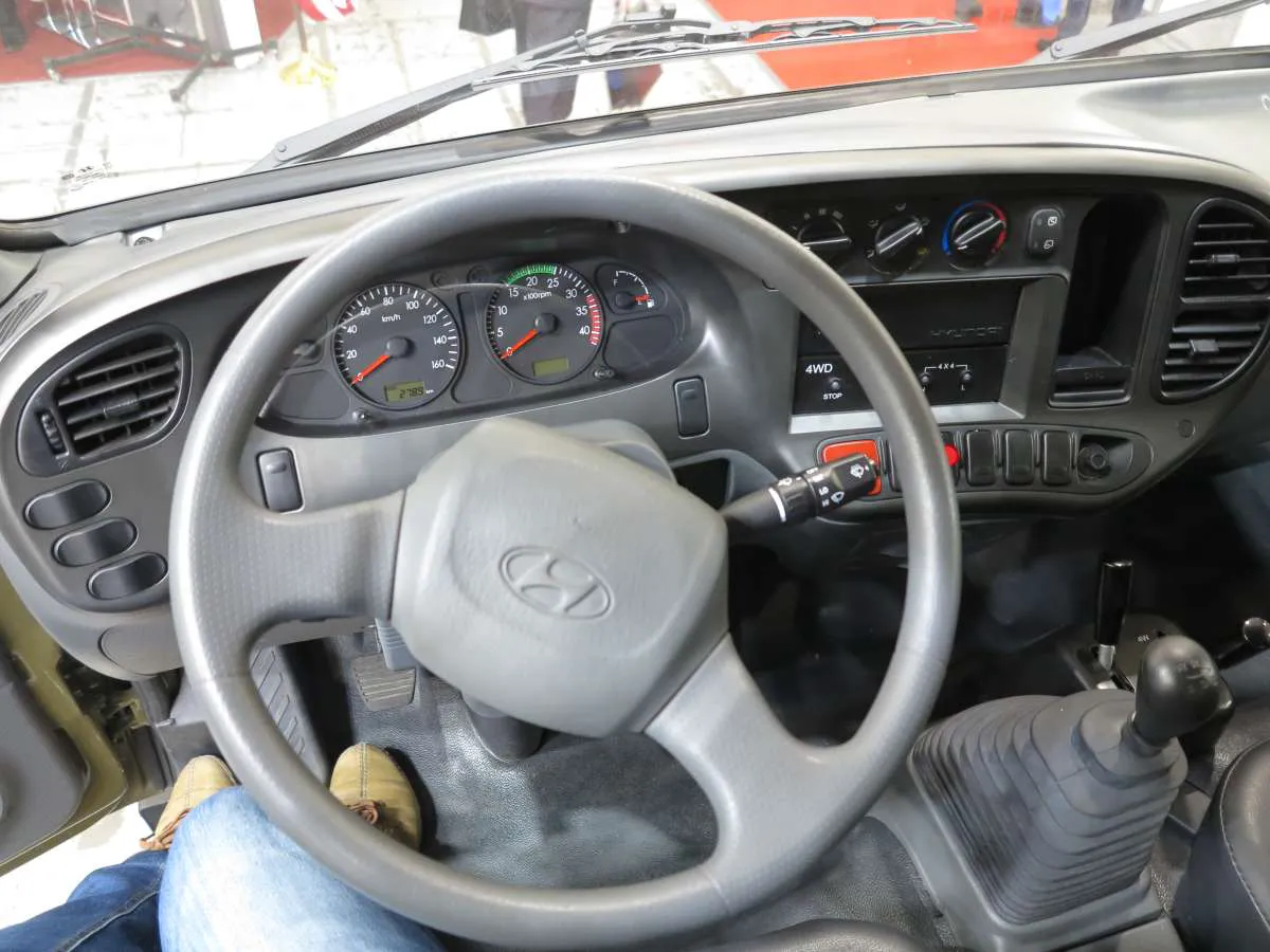 Под кабиной находится турбодизель D4DC рабочим объемом 3907 см куб. и мощностью 120 л.с. при 3200 об/мин. Максимальный крутящий момент – 300 Нм при 2000 об/мин. Коробка – механическая, 5-ступенчатая. Имеется 2-ступенчатая раздаточная коробка с пониженным рядом.
