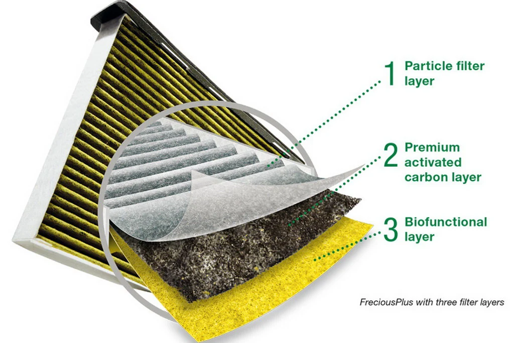 Аллергены – это крошечные белки, которые находятся в пыльце. Когда пыльца лопается, она освобождает аллергены, которые могут попасть в салон автомобиля во время поездок. Чтобы предотвратить это, в новом фильтре FreciousPlus применяется действие полифенолов. Это активное вещество есть во многих растениях, например, в зеленом чае. Введенный в состав  биофункционального покрытия, полифенол улавливает аллергены, находящиеся в воздухе и связывается до 98 процентов из них.