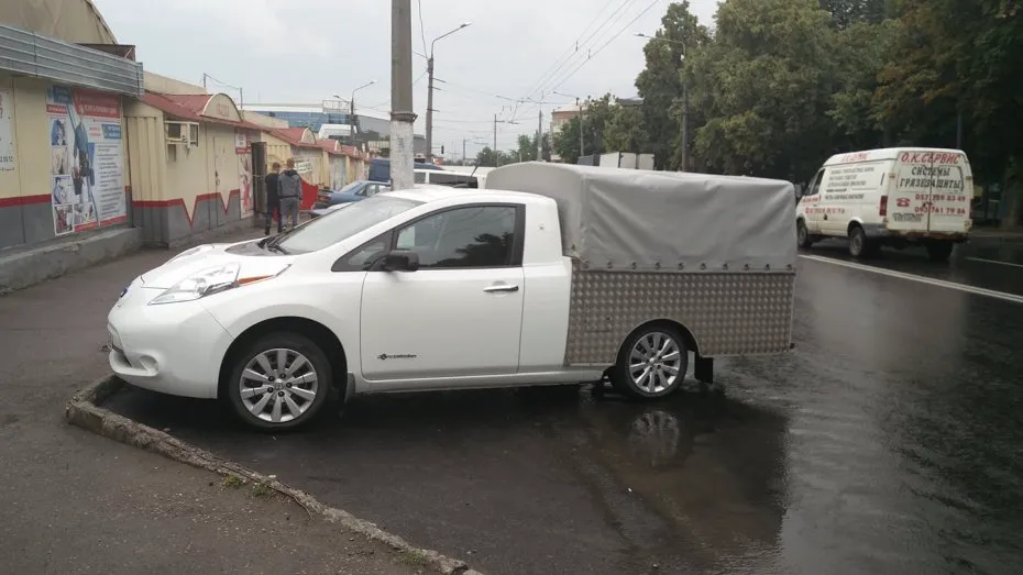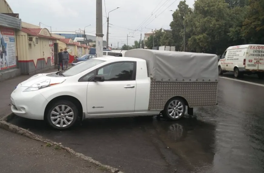 Не исключено, что данный пикап сделали из Nissan Leaf, который побывал в серьезном ДТП. Поэтому дабы не тратиться на ремонт родного кузова из машины решили построить грузовик. Хочется верить, что после таких кардинальных доработок новоявленный пикап не представляет опасности для других участников движения.