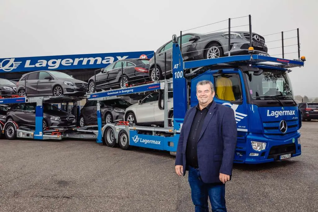 Группе компаний Lagermax принадлежит 55 филиалов в двенадцати европейских странах. В сегменте перевозки автомобилей у нее наибольший оборот. Для хранения новых автомобилей компания использует площадь около двух миллионов квадратных метров. Парк компании состоит из более 500 грузовиков, принадлежащих группе, плюс автомобили подрядчиков. В следующем году группа отметит свой 100-й день рождения. Для Франца Биргмана первый новый автовоз Actros, который получил внутренний номер AT 100, уже является «вехой в истории компании».