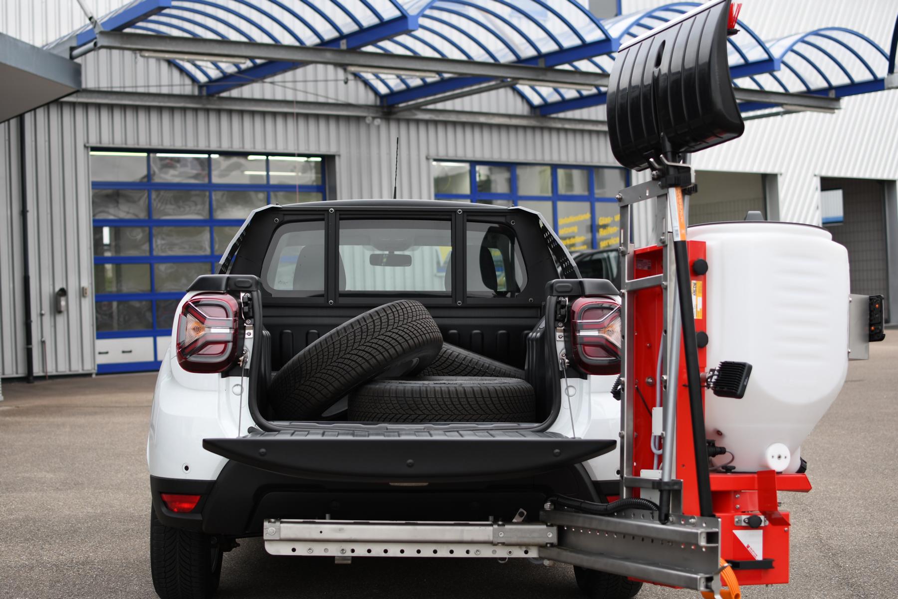 Зима вже почалася, а значить для багатьох підприємств саме час подбати про снігоприбиральну техніку. Цікаво, що для цього можна використовувати навіть позашляховики та кросовери. І тому наочний приклад – пікап Dacia Duster від румунського кузовного забудовника Romturingia, який адаптували для зимового утримання доріг. Спереду встановили снігоприбиральний відвал Boss XT із додатковими фарами зверху. А у відкритому кузові змонтували розкидач антиожеледних реагентів із відповідним бункером.