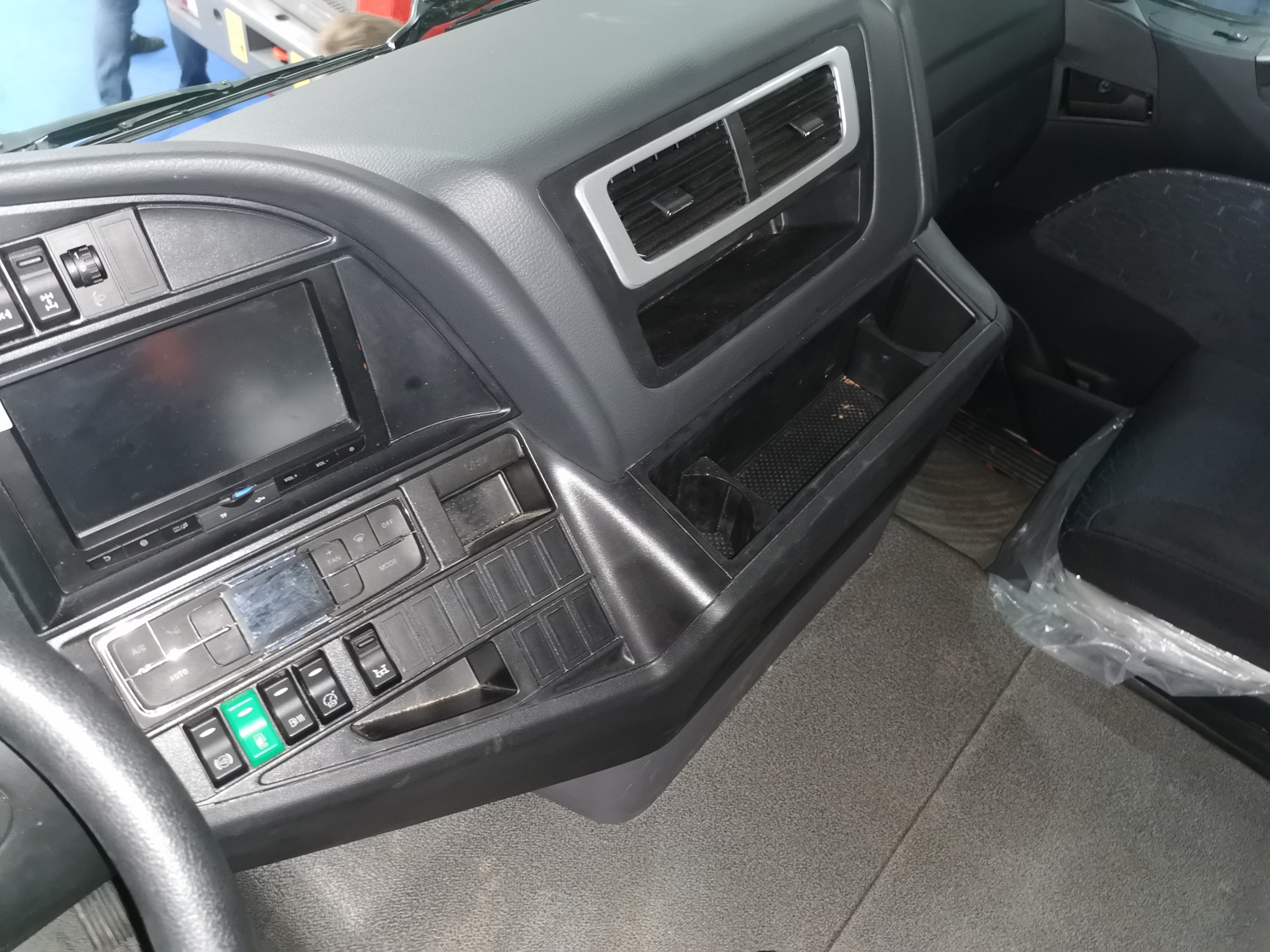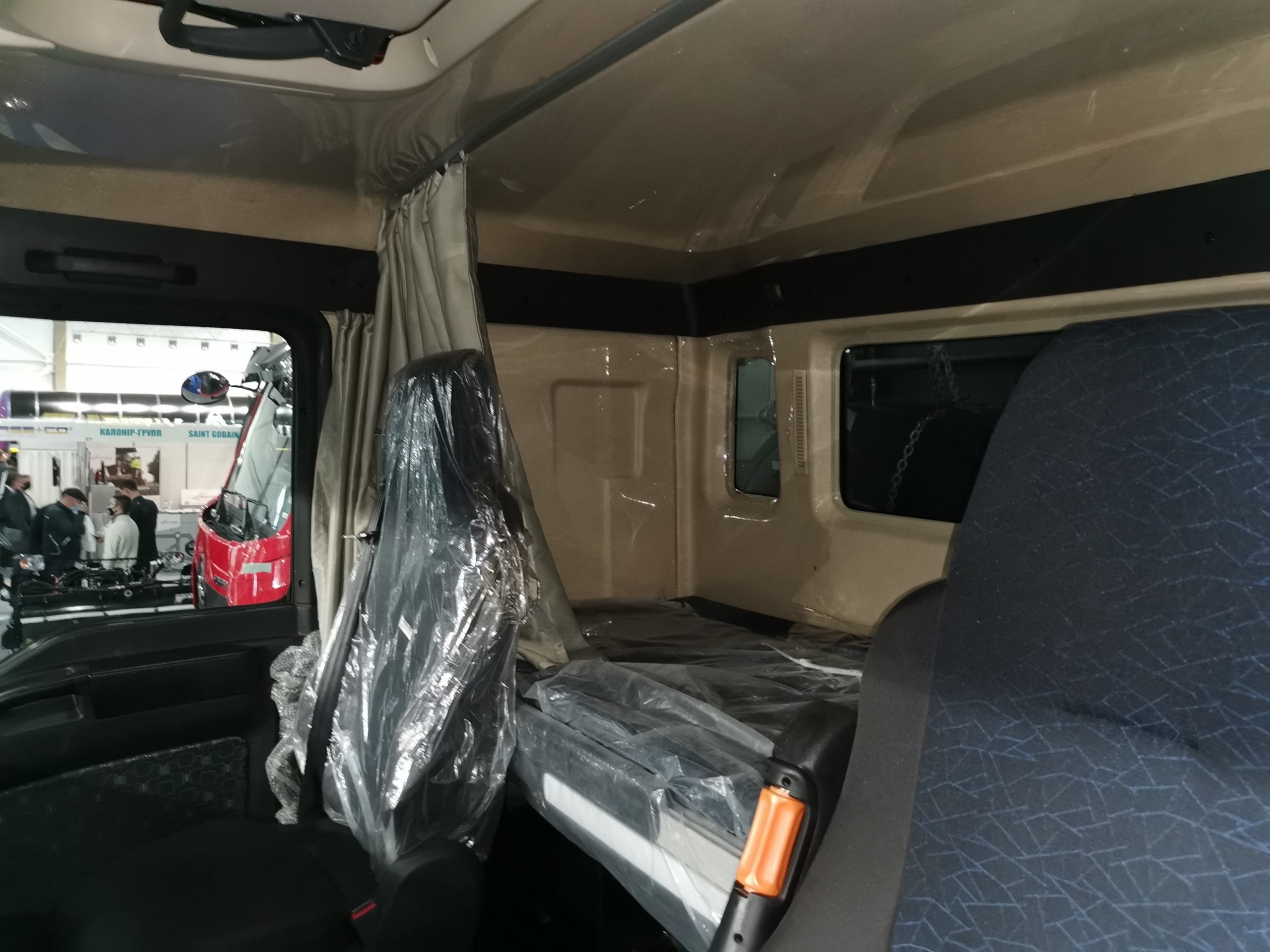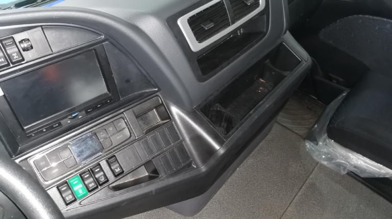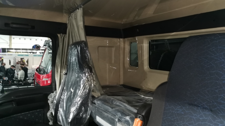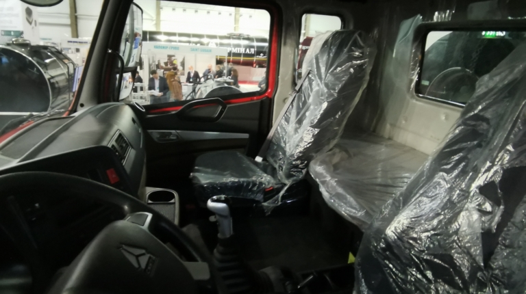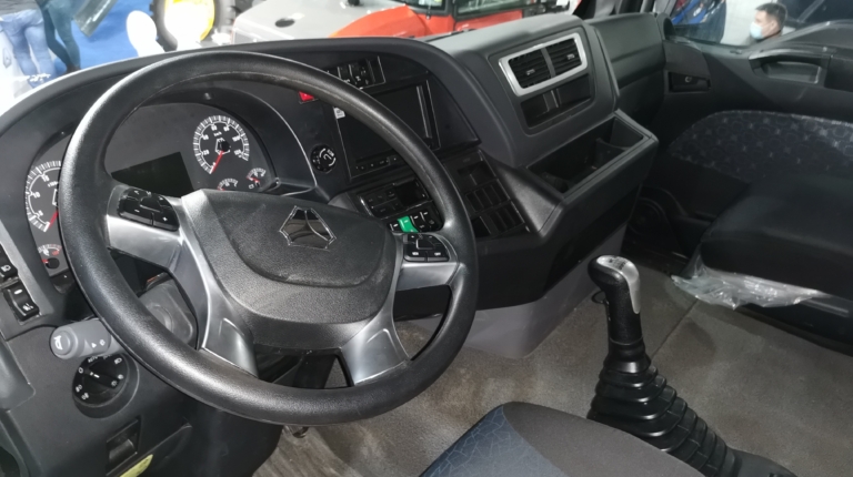 Что касается кабины, то она оснащена комфортабельными креслами (водительское – на пневмоподвеске) и имеет одно спальное место. В комплектацию входят электростеклоподъемники, кондиционер BEHR, магнитола MP3 и верхняя вещевая полка.