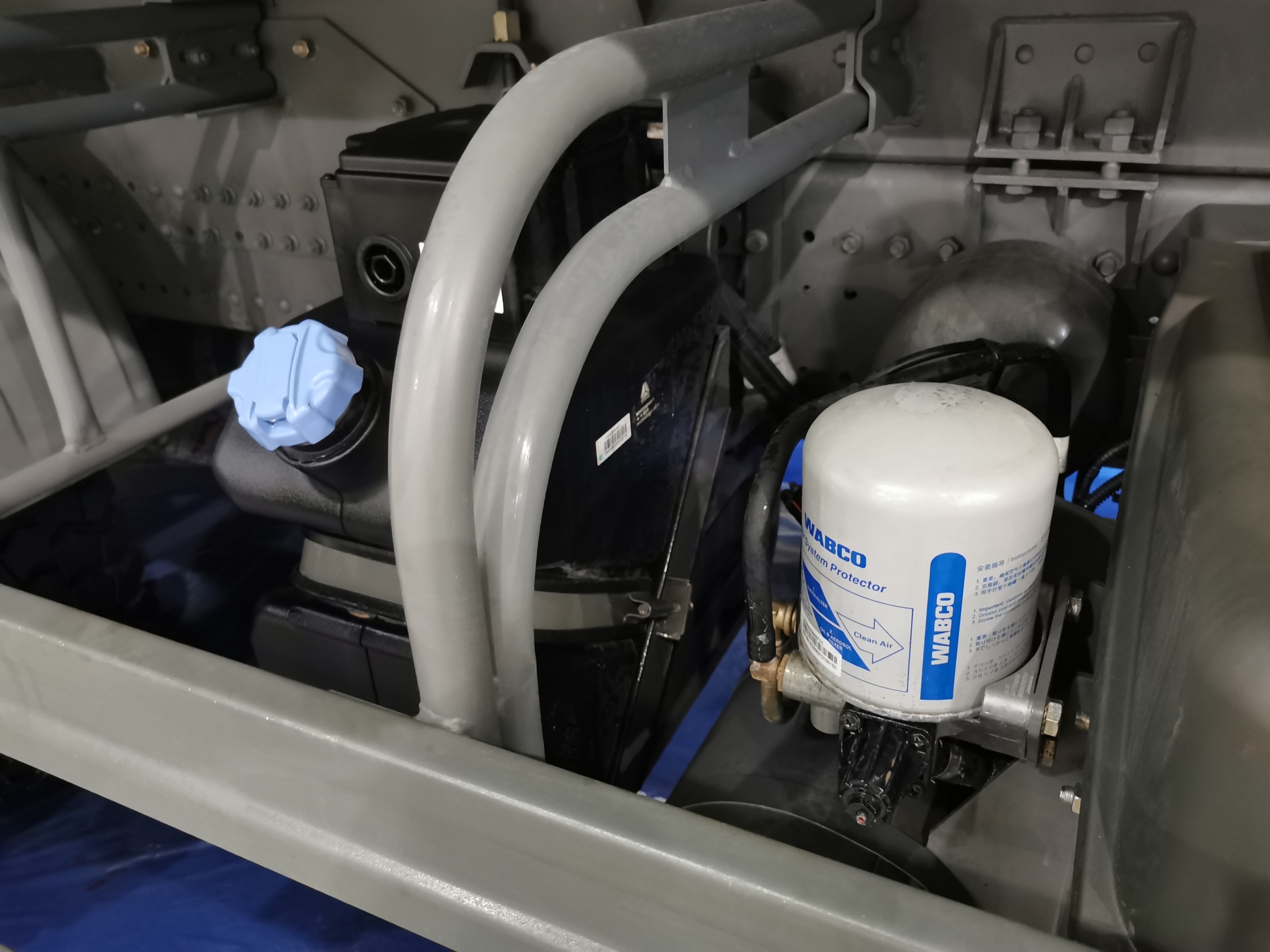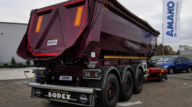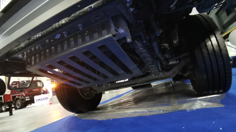 На выставке представлена машина с 10-кубовым кузовом Porgest, выполненном из стали Hardox (днище – 6 мм, борта – 5 мм). Кузов не пустой, в данном случае в нем установлена машина для ямочного ремонта польского производства MADROG.
