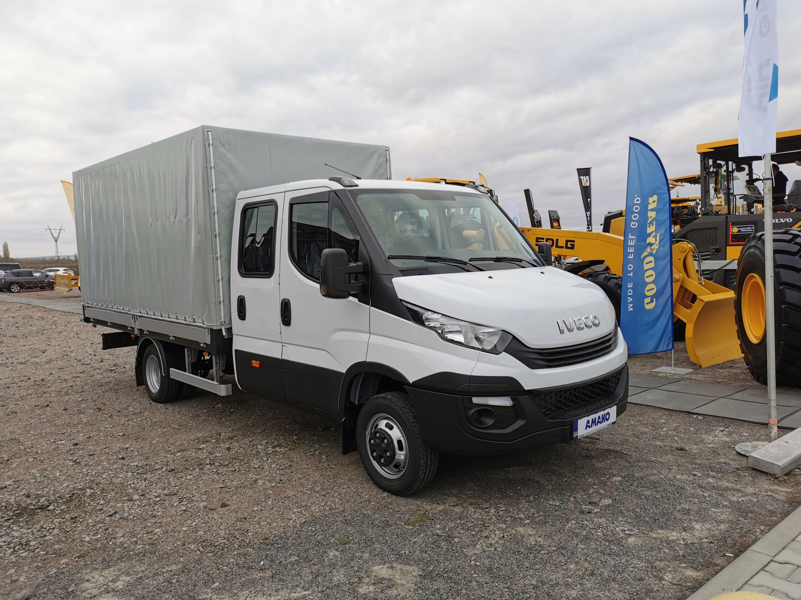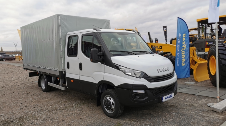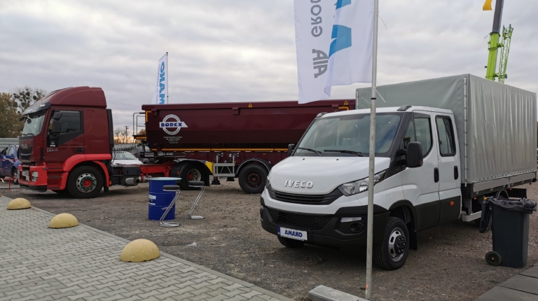 А на открытой площадке представлен сертифицированный седельный тягач с пробегом (программа Ok Trucks) IVECO Stralis в паре с самосвальным полуприцепом Bodex с кузовом полукруглого сечения (такие модели этого бренда в Украину официально еще не поставлялись). Рядом с ним стоит модель IVECO Daily с двухрядной кабиной и бортовым тентованным кузовом – это исполнение самое востребованное у дорожно-строительных компаний Украины.