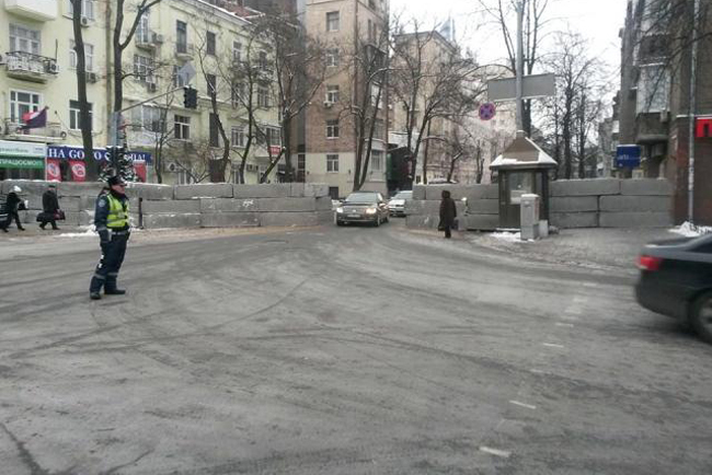 Подъезд к правительственному кварталу в Киеве перекрыт бетонными блоками