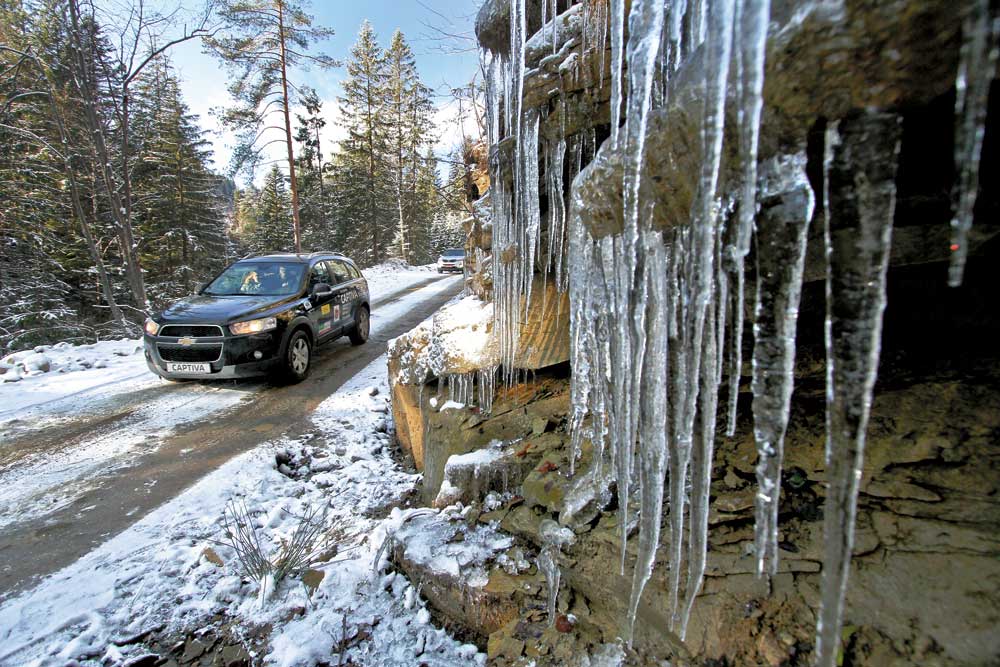 Для Chevrolet Сaptiva, Kia Sorento и Opel Mokka был подготовлен маршрут реального бездорожья, проложенный по лесовозным дорогам в окрестностях Буковеля. По сложности он уступал полигону, но и внедорожные способности представленных машин были очень разными.
