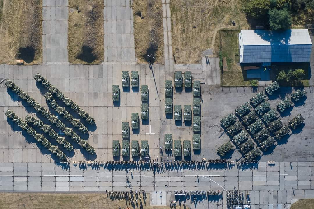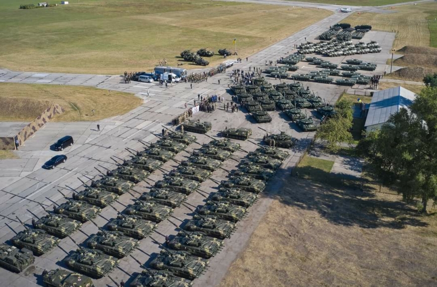 “Сегодня в подразделения Вооруженных сил для выполнения задач по назначению передается 132 образца вооружения и военной техники, 38 единиц средств связи, 78 приборов наблюдения. Это модернизированные танки Т-64, новейшие бронетранспортеры (прим. редакции: БТР-4), боевые машины пехоты и тактические бронированные машины (прим. редакции: “Дозор-Б”), а также современные комплексы радиоэлектронной борьбы и средства наблюдения “, – сказал Зеленский.