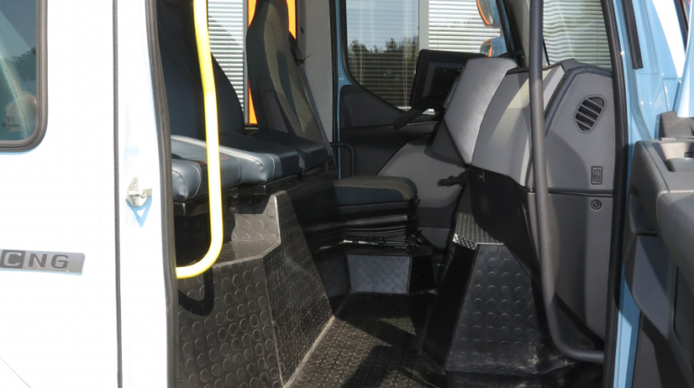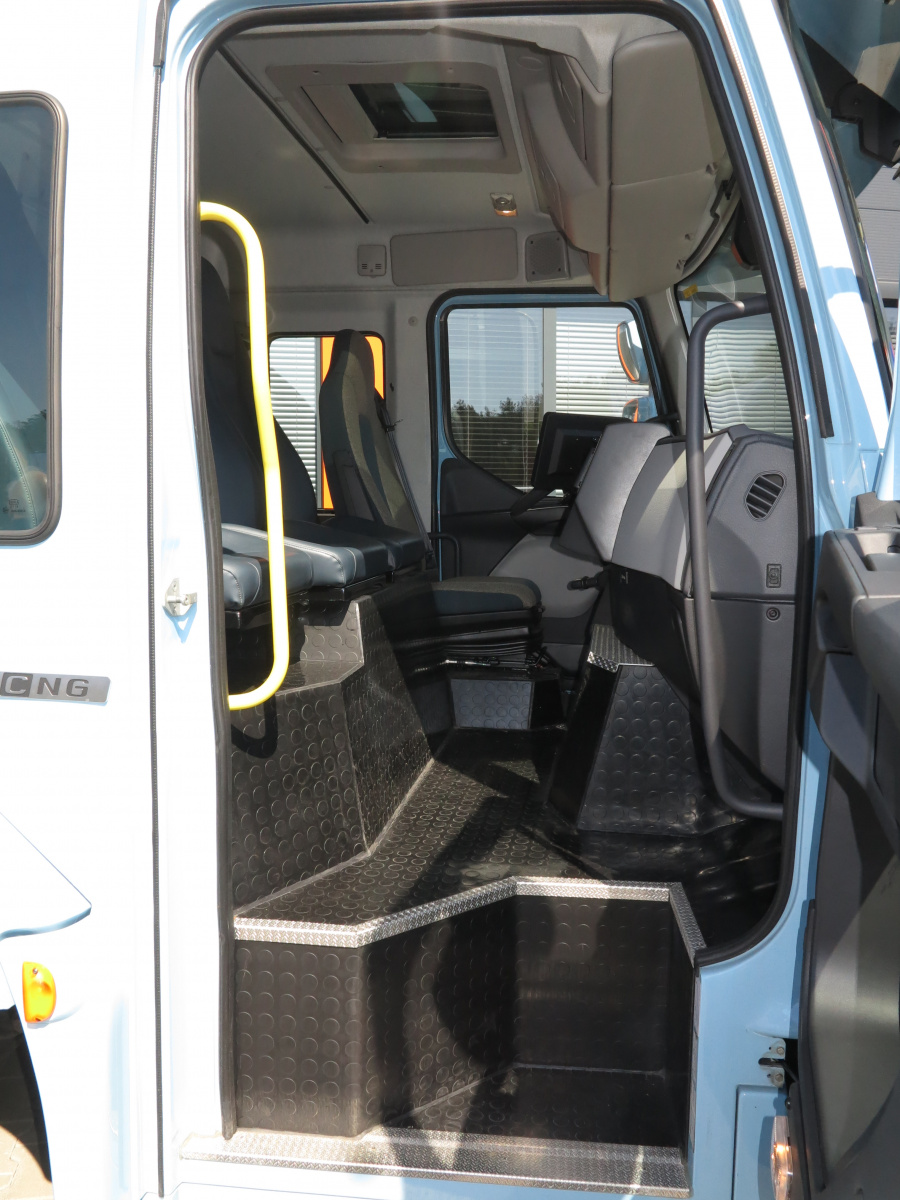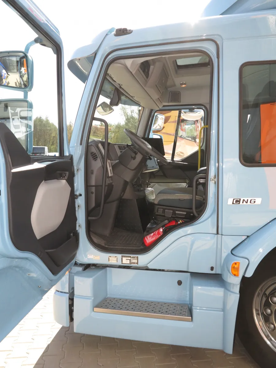 Отметим также, что на статической презентации также присутствовал и Volvo FE с двигателем на сжатом газе – СNG. Это 9-литровый двигатель мощностью 320 л.с. и максимальным крутящим моментом 1356 Нм. Его питают 4 баллона, в которые помещается 160 кубометров газа, что эквивалентно 117 л дизтоплива. В итоге запас хода достигает 400 км. К преимуществам двигателя СNG нужно отнести отсутствие системы очистки выпускных газов SCR с AdBlue, равно как и сажевого фильтра DPF. Этот мотор также позволяет существенно сократить выбросы углекислого газа CO2.