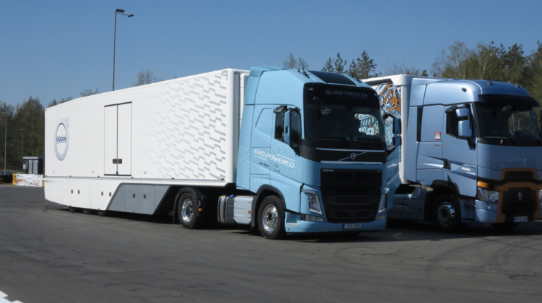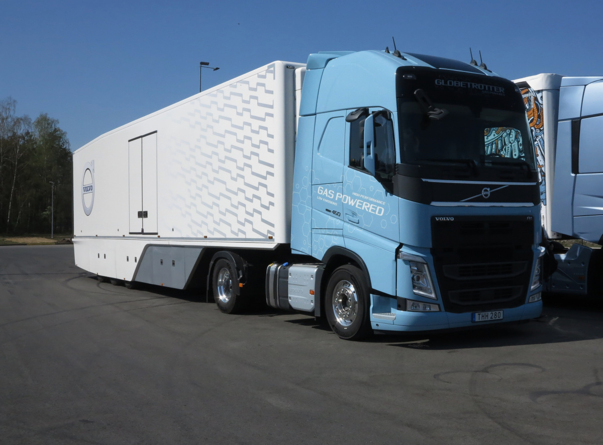 Одной из сенсаций презентации на треке Tor Modlin стал магистральный тягач Volvo FH 460 LNG – с двигателем, работающим на сжиженном газе. Отметим, что этот мотор, предлагаемый также в варианте 420 л.с., соответствует ныне действующим стандартам Euro 6 Step C. Выхлоп его намного чище: выбрасывается на 20% меньше углекислого газа CO2 (а при использовании биогаза – то на все 100%). Также меньше твердых частиц, окислов углерода NOx. Помимо этого мотор позволяет сэкономить на топливе и обладает лучшими параметрами.