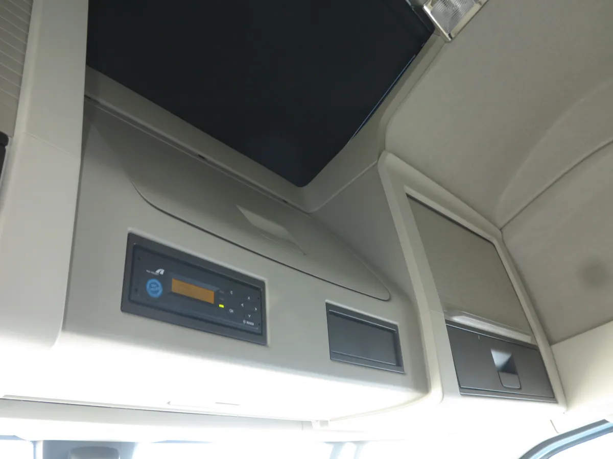 Еще одним интересным 13-литровым агрегатом стандарта Euro 6 Step D являются турбокомпаундный двигатель D13TC. В нем выпускные газы из картера преобразуются в механическую энергию – с помощью дополнительной турбины. Этот мотор входит в новый пакет I-Save, равно как и автоматическая коробка с иным алгоритмом переключения. В итоге машина раньше начинает двигаться накатом (на нейтральной передаче) при движении в гору, также при движении в гору происходит меньше переключений.