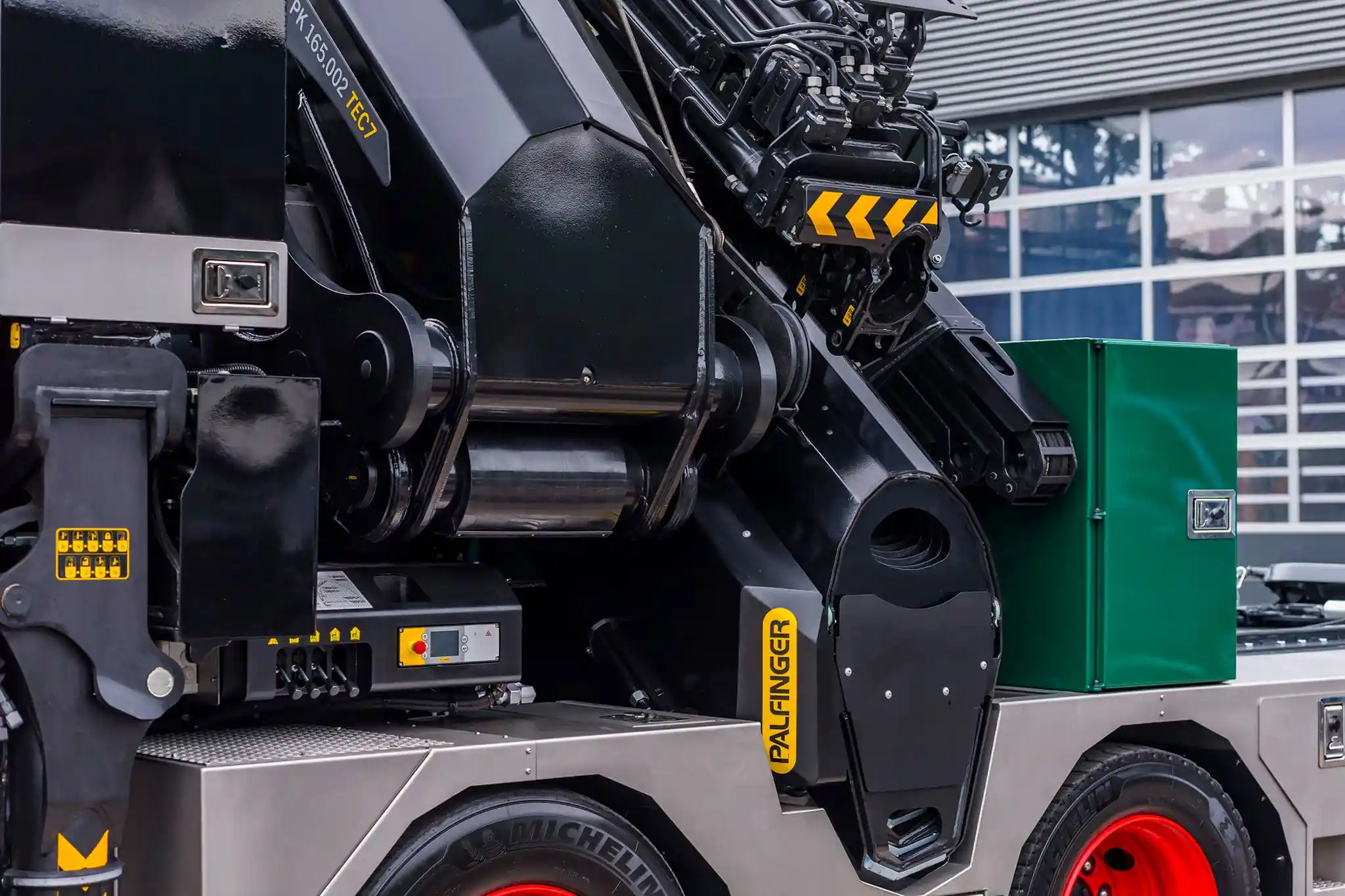 Что же касается крана-манипулятора, то это – одна из самых мощных моделей Palfinger данного типа – PK 165.002 TEC 7. Как указывает заказчик, он обладает грузовым моментом 165 тм (по данным на официальном сайте – 124,8 тм). Грузоподъемность крана составляет 32 т.