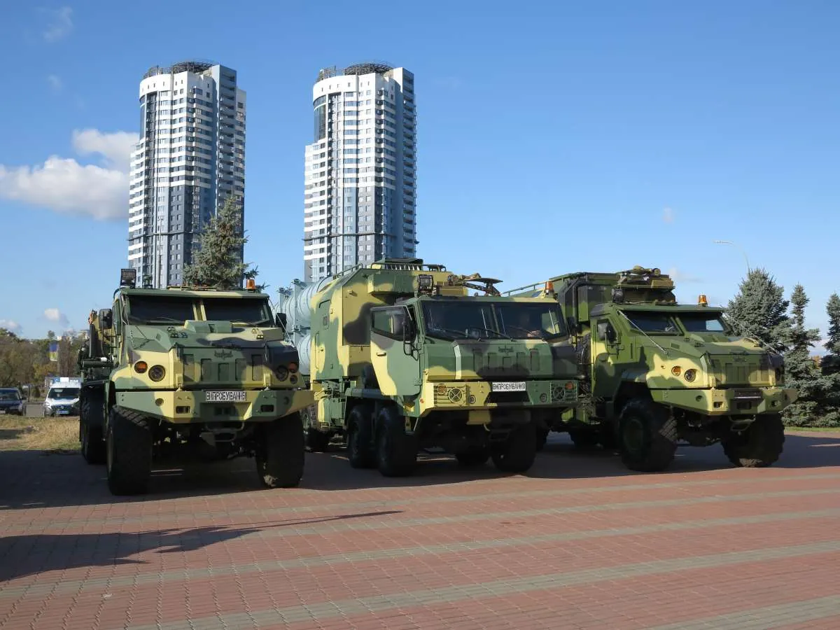 Напередодні відкриття виставки «Зброя та безпека 2019», запланованого на 8 жовтня, нам вдалося сфотографувати деякі цікаві новинки, які вже приїхали. Передусім відзначимо ракетний комплекс «Нептун», побудований на шасі вантажівок КрАЗ, оснащених бронекабінами вітчизняного підприємства «Українська бронетехніка». На виставці представлено три автомобілі, які входять до складу комплексу.