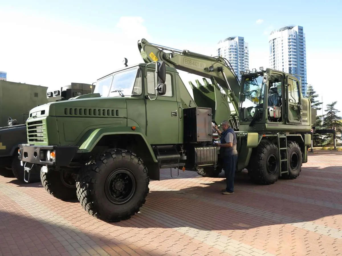 Серед новинок на відкритому майданчику виставки "Зброя і безпека 2019" також відзначимо інженерні автомобілі на шасі КрАЗ-63221 (6х6). Це 25-тонний автокран КТА-25 на 25 т і екскаватор Hidromek, представлені Дрогобицьким автокрановим заводом.