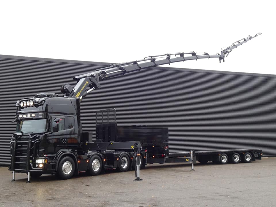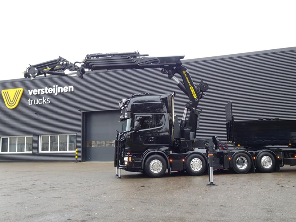 Недавно голландская компания Versteijnen Trucks, занимающаяся продажей грузовых автомобилей, поставила своему клиенту очень интересную машину. Это седельный тягач Scania колесной формулы 8х2, оснащенный сверхмощным краном-манипулятором.