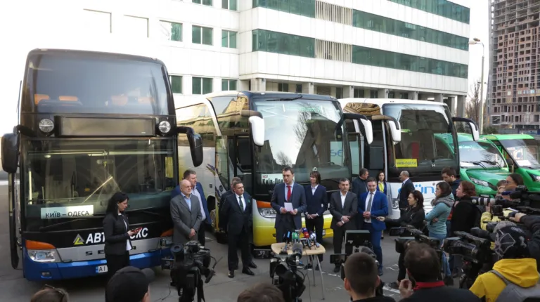 Прошел год с начала реформы в сфере внутренних автобусных перевозок. Были изменены правила и изменен рынок. И результат был продемонстрирован журналистам 5 апреля на специальном брифинге. Министр инфраструктуры Украины Владимир Омелян совместно с перевозчиками показали какие автобусы сегодня работают на маршрутах и рассказали о результат реформы.