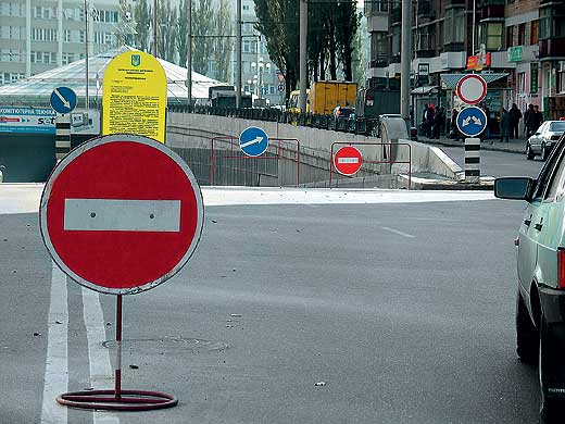 Когда мы выезжали с Краснозвездного на Чоколовский бульвар в районе Севастопольской площади, оказалось, что забор с «кирпичом», преграждавший путь встречному движению в подземный тоннель, кто-то отодвинул. Поскольку заграждение, опять же, никто не охранял, жаждущие попасть на Краснозвездный тихонько пробирались в тоннель. В общем, несмотря на то, что Краснозвездный таки перекрыт, проблему и дорожники, и водители, и ГАИ решают весьма цивилизованно и сообща.